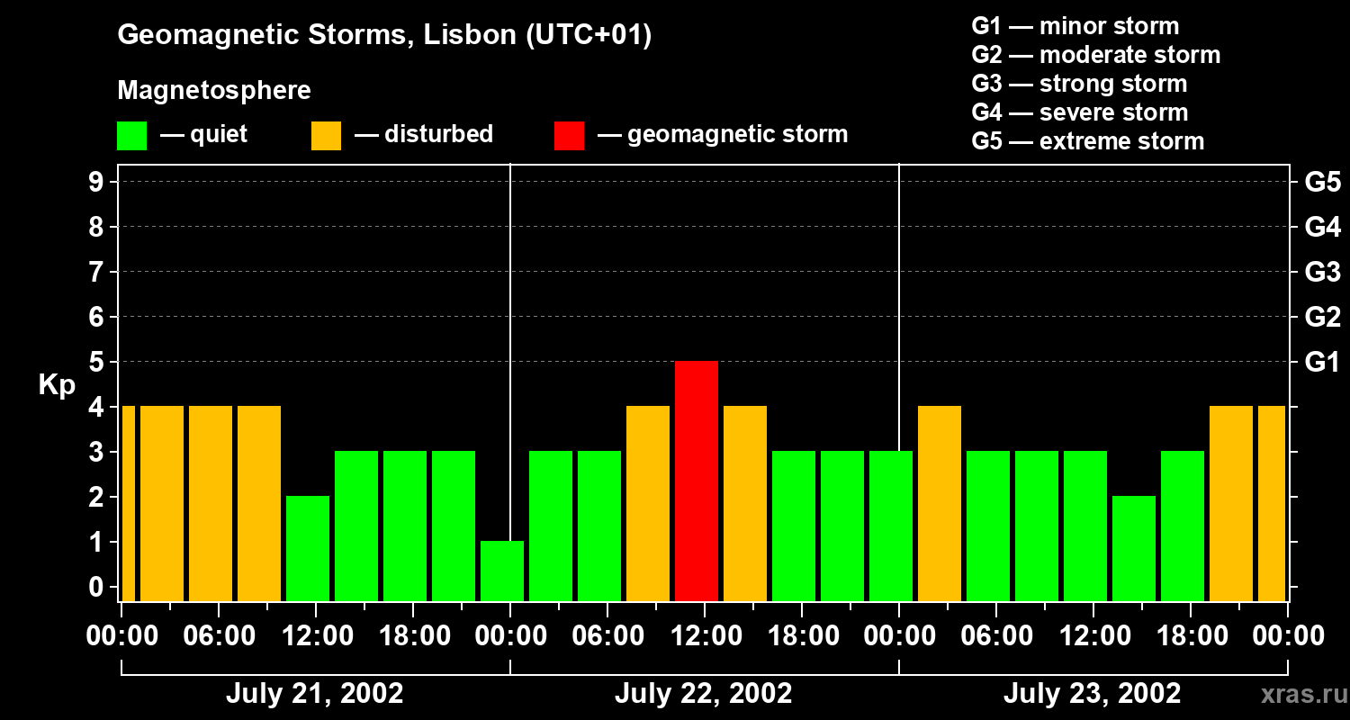 Geomagnetic storms in Lisbon on Jul 23, 2002