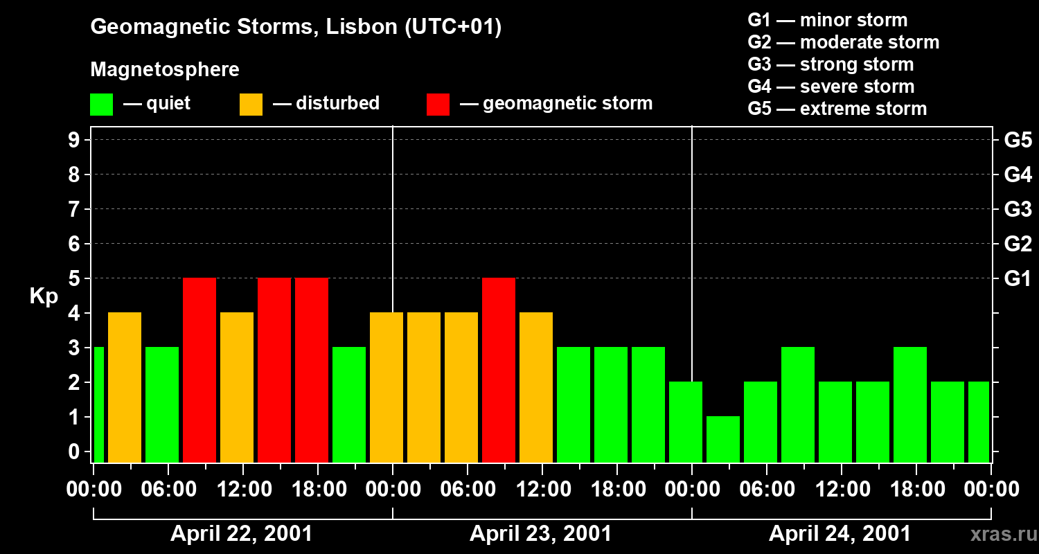 Geomagnetic storms in Lisbon — Apr 24, 2001