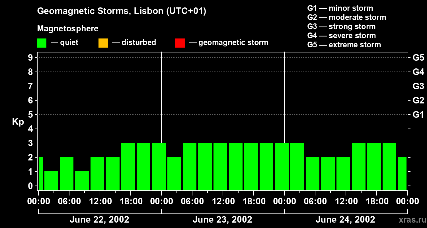 Geomagnetic storms in Lisbon on Jun 24, 2002