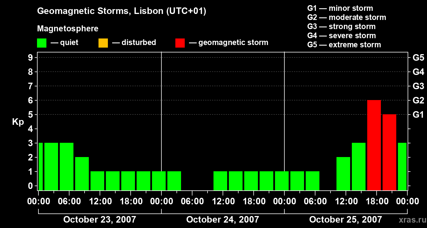 Geomagnetic storms in Lisbon — Oct 25, 2007