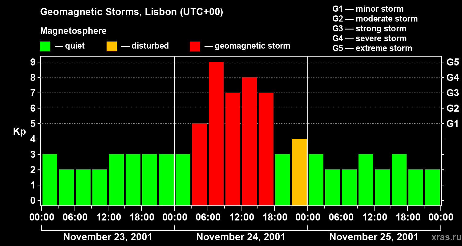 Geomagnetic storms in Lisbon — Nov 25, 2001