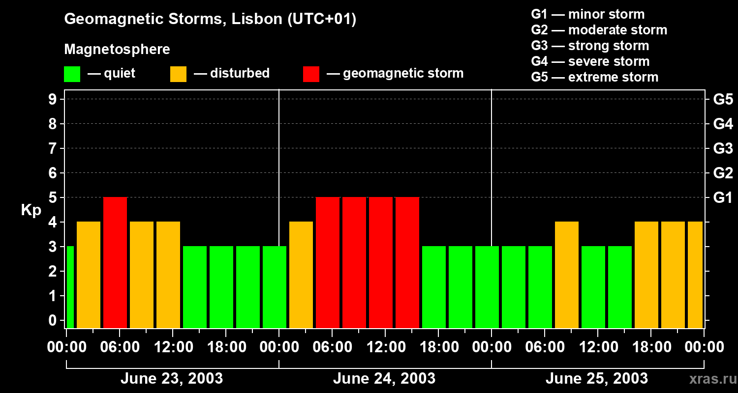 Geomagnetic storms in Lisbon on Jun 25, 2003