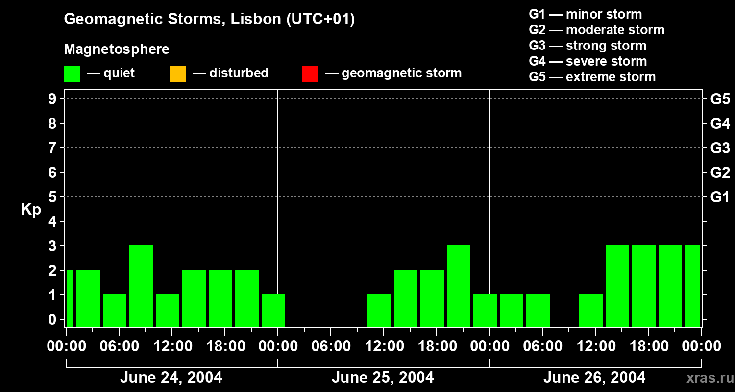 Geomagnetic storms in Lisbon on Jun 26, 2004