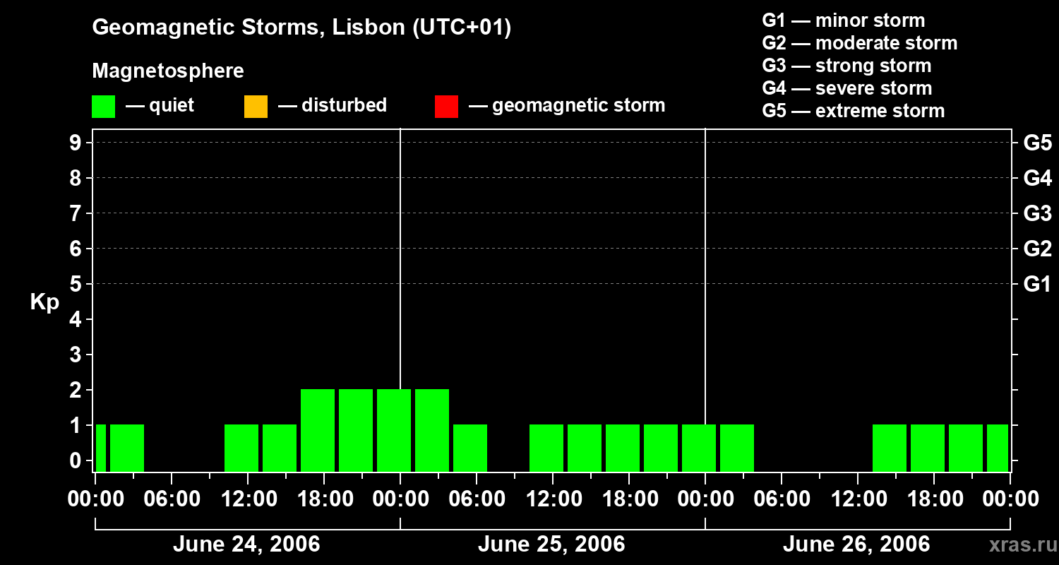 Geomagnetic storms in Lisbon on Jun 26, 2006