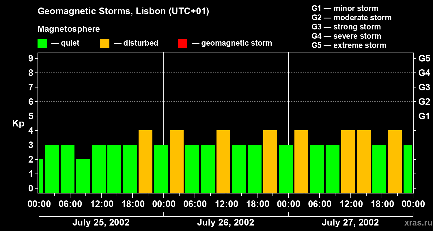 Geomagnetic storms in Lisbon on Jul 27, 2002