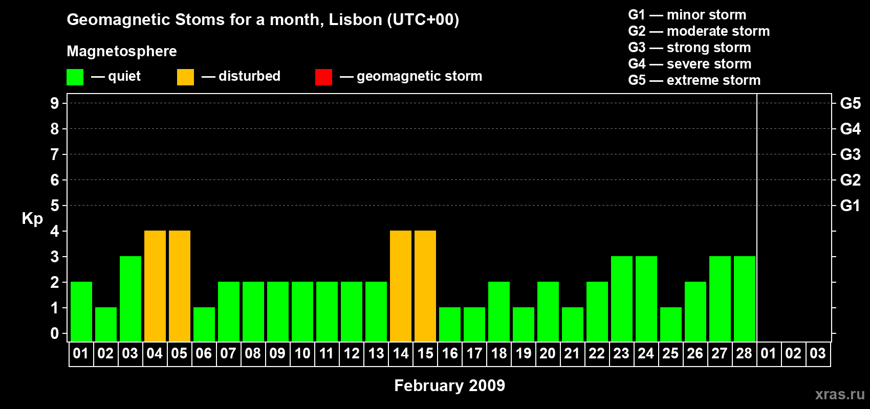 Geomagnetic storms in Lisbon — Feb 28, 2009