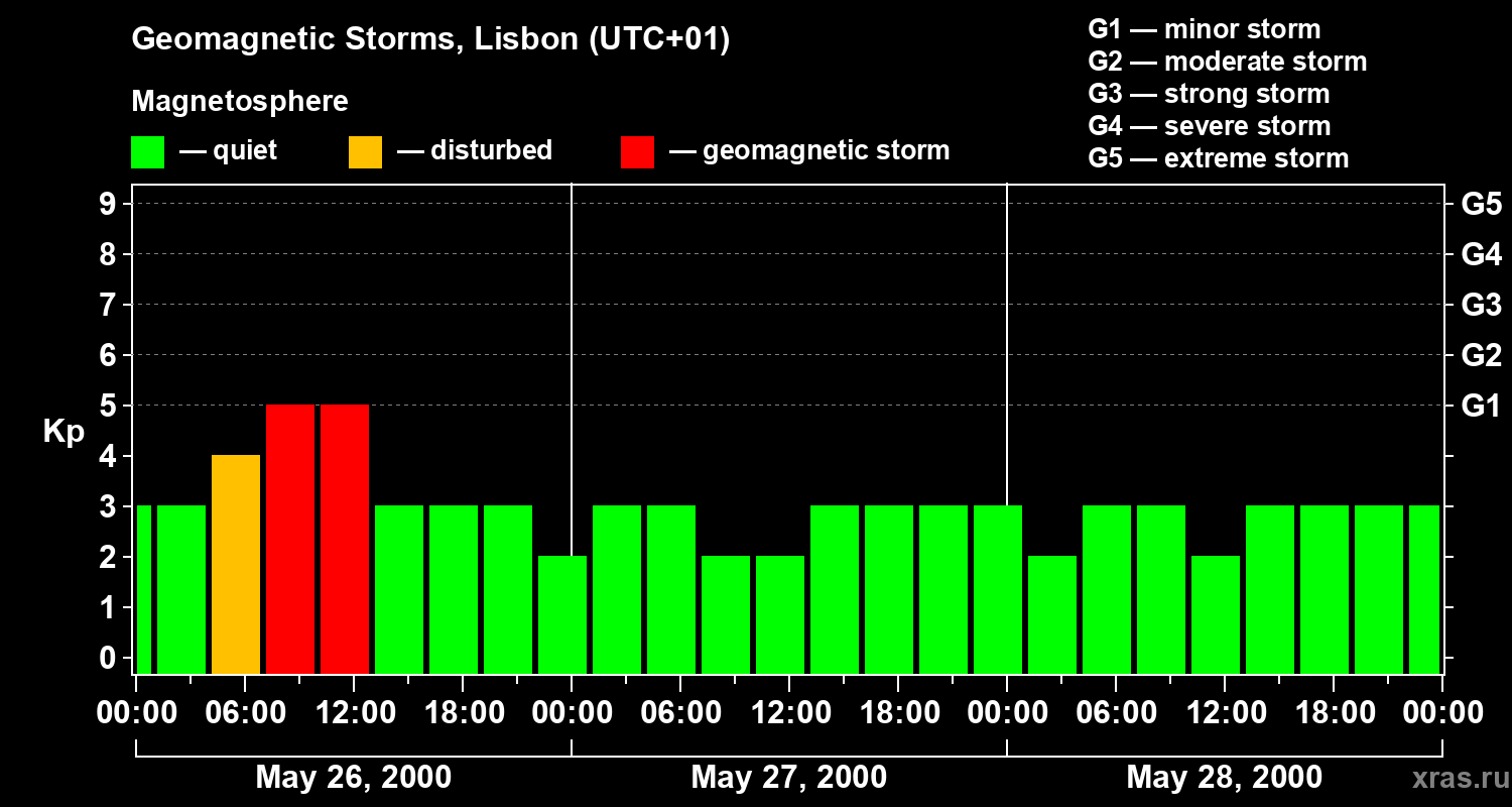 Geomagnetic storms in Lisbon on May 28, 2000