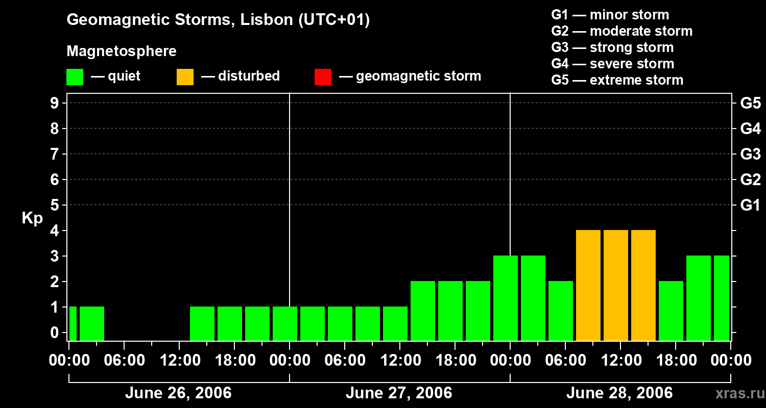 Geomagnetic storms in Lisbon — Jun 28, 2006