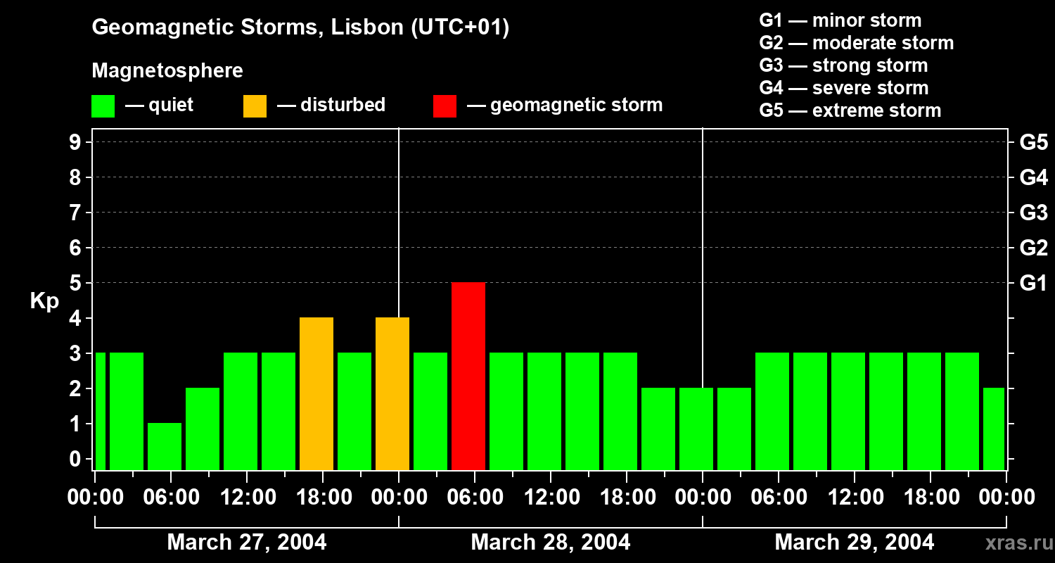 Geomagnetic storms in Lisbon — Mar 29, 2004