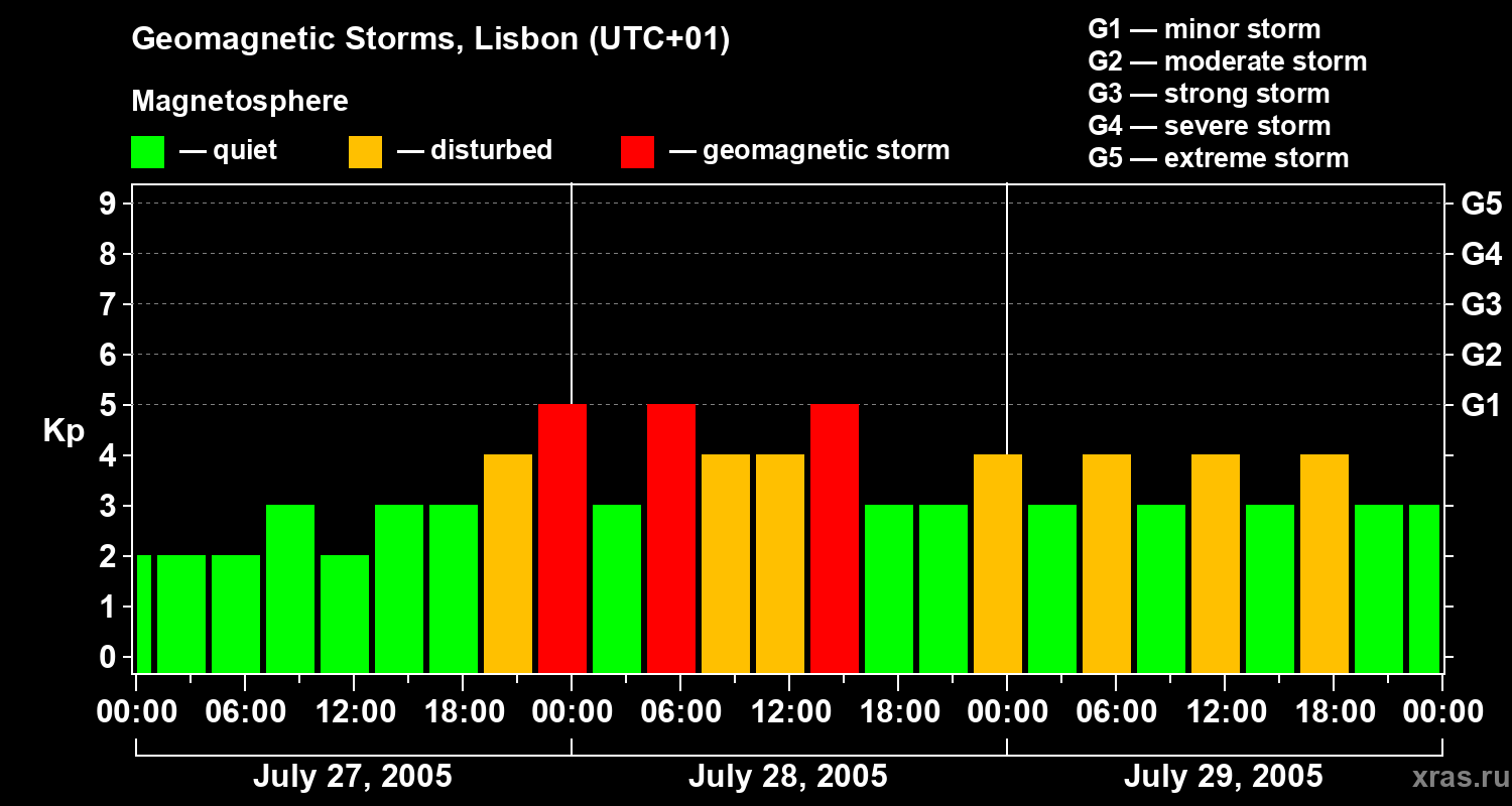 Geomagnetic storms in Lisbon on Jul 29, 2005