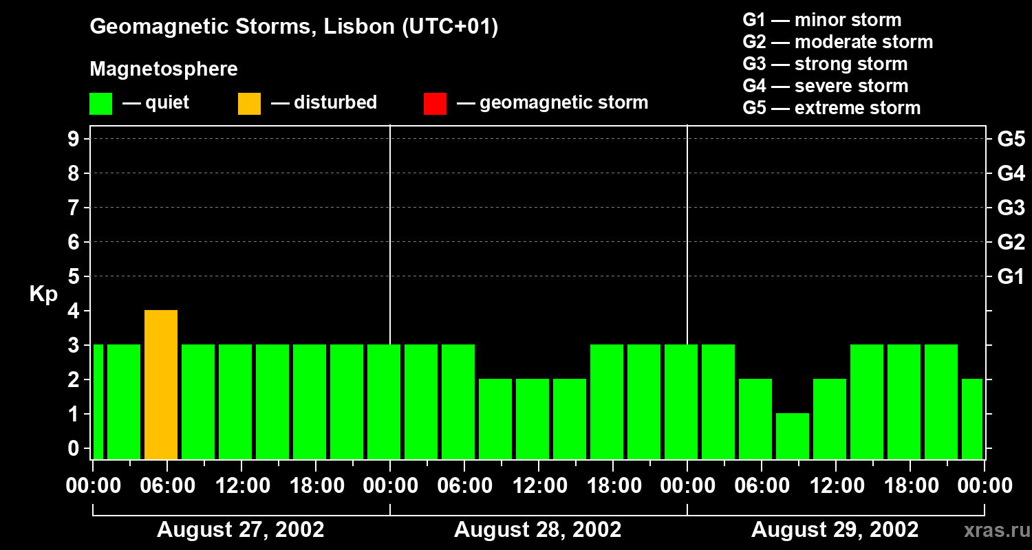 Geomagnetic storms in Lisbon — Aug 29, 2002