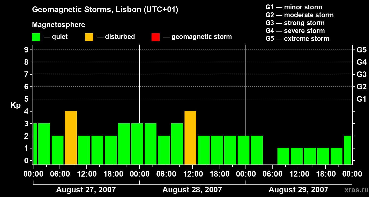 Geomagnetic storms in Lisbon — Aug 29, 2007