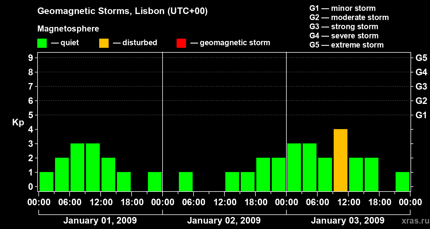 Geomagnetic storms in Lisbon on Jan 03, 2009