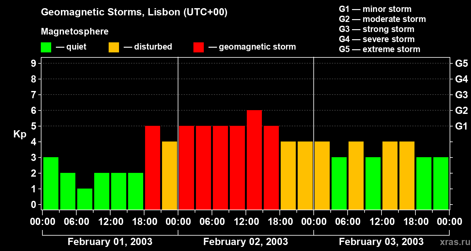 Geomagnetic storms in Lisbon on Feb 03, 2003