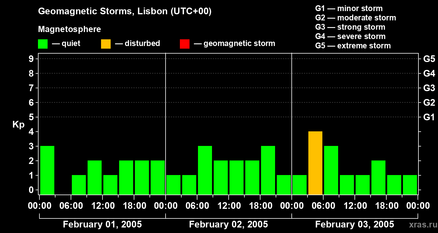 Geomagnetic storms in Lisbon on Feb 03, 2005
