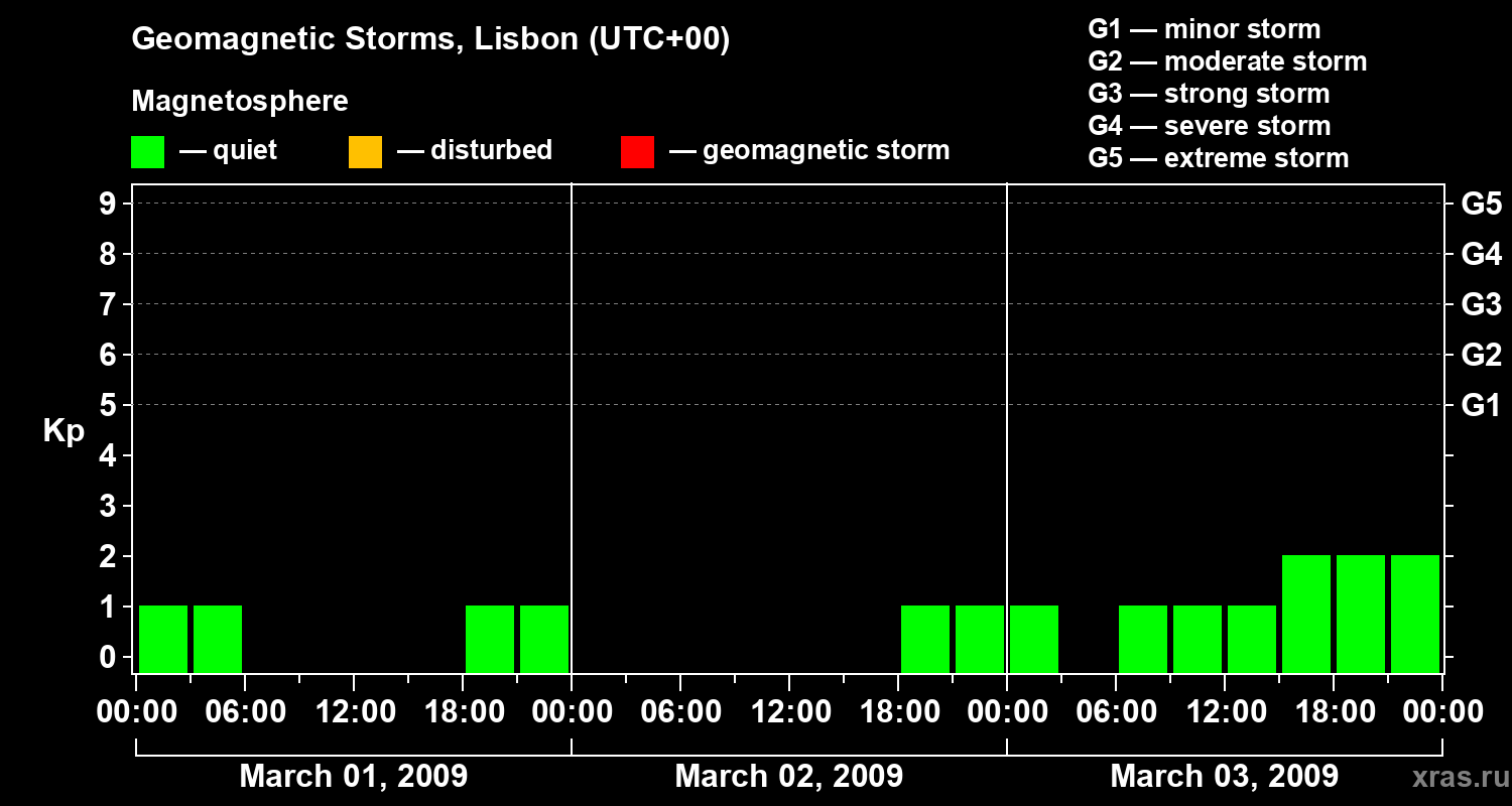 Geomagnetic storms in Lisbon — Mar 03, 2009