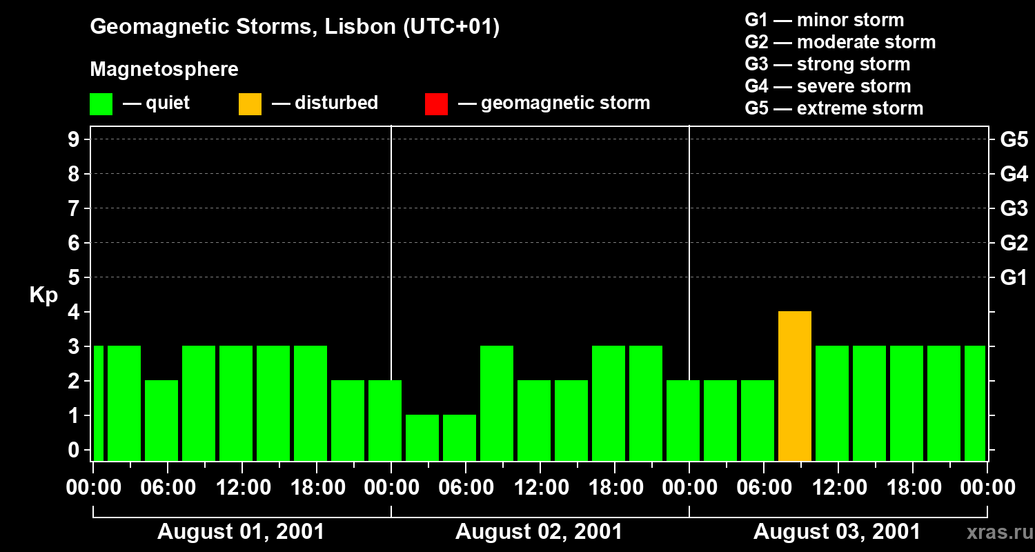 Geomagnetic storms in Lisbon on Aug 03, 2001