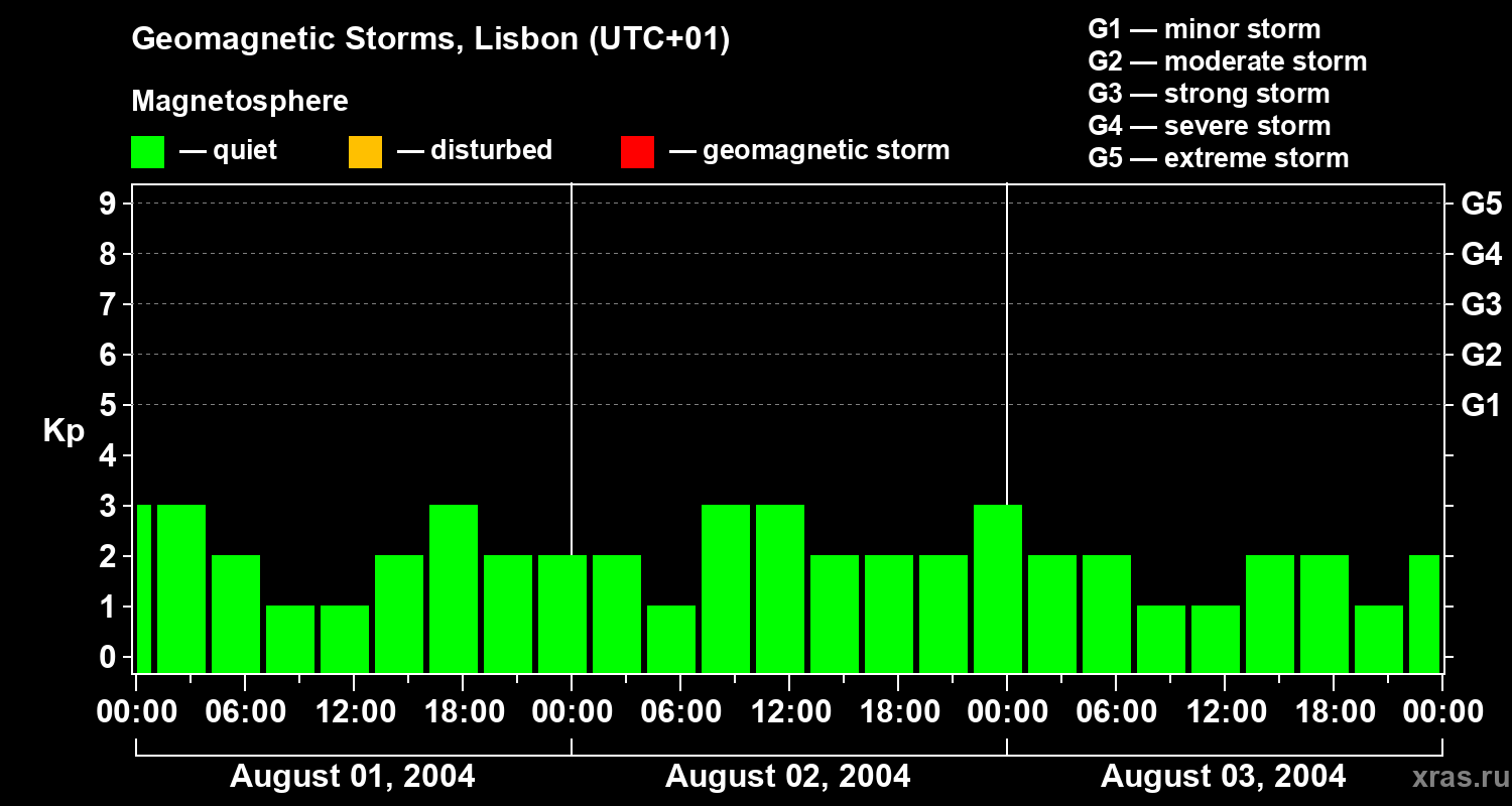 Geomagnetic storms in Lisbon on Aug 03, 2004