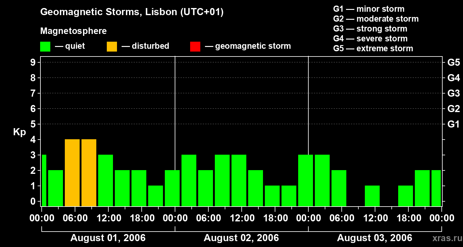 Geomagnetic storms in Lisbon on Aug 03, 2006