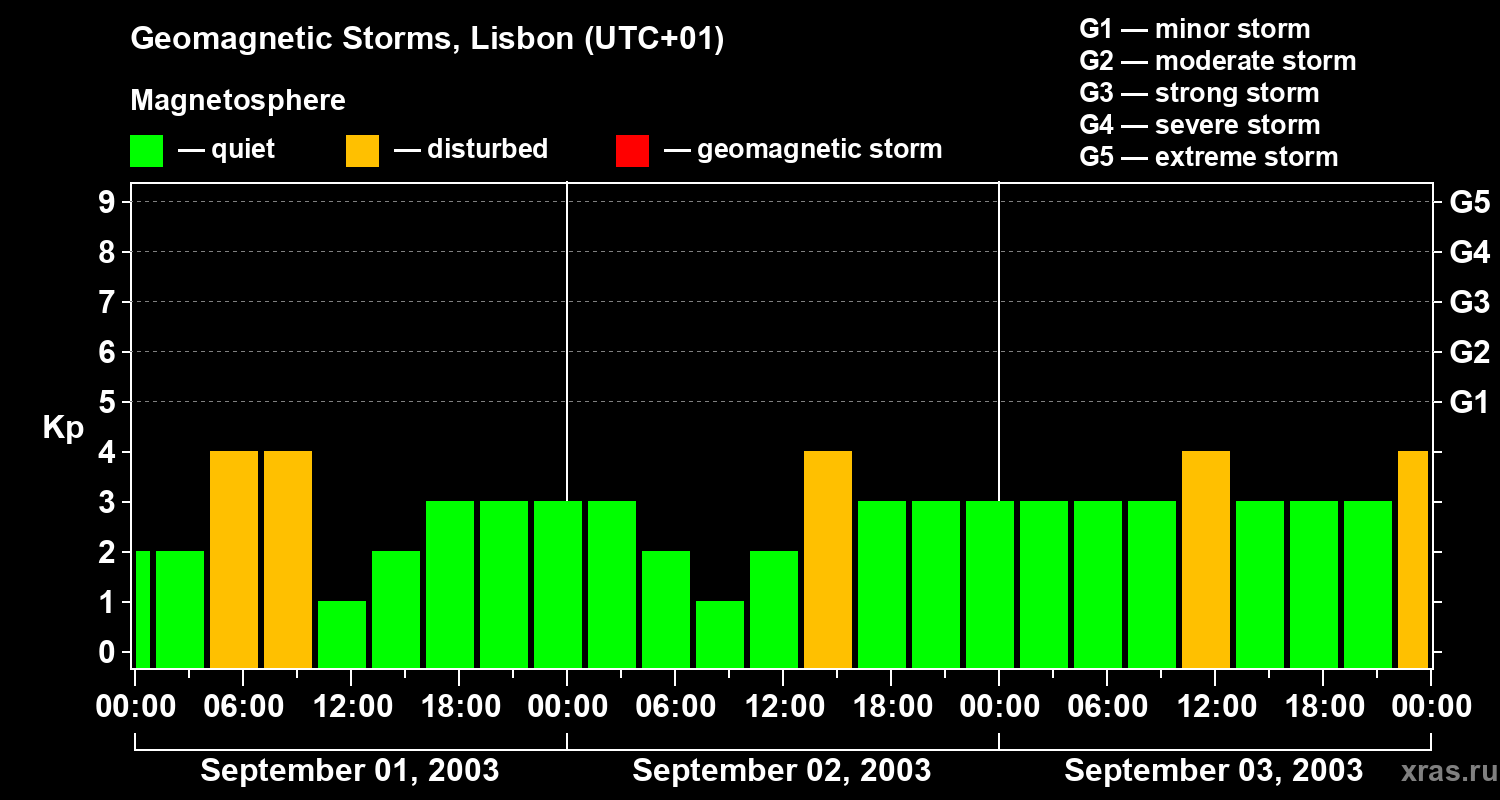 Geomagnetic storms in Lisbon on Sep 03, 2003
