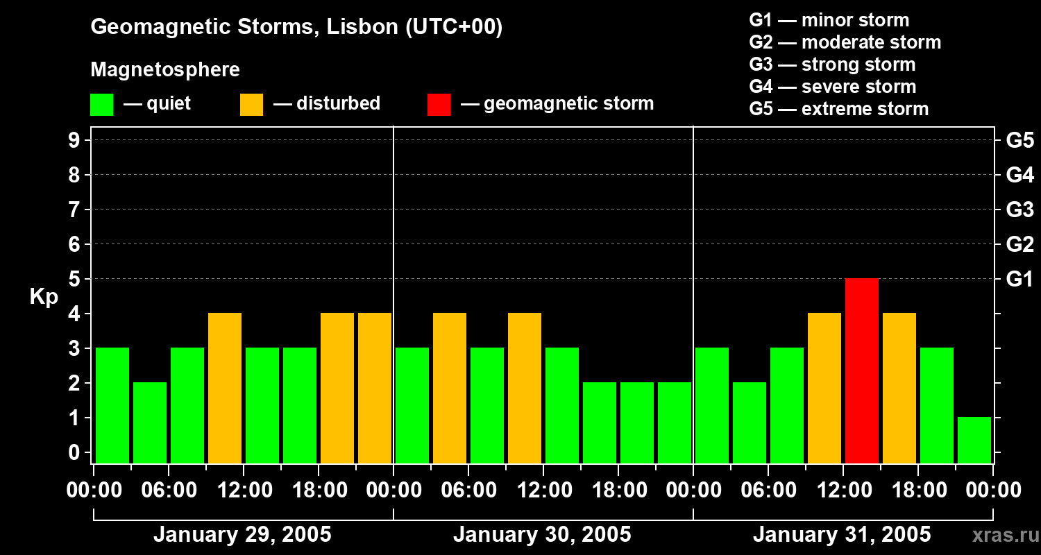 Geomagnetic storms in Lisbon — Jan 31, 2005