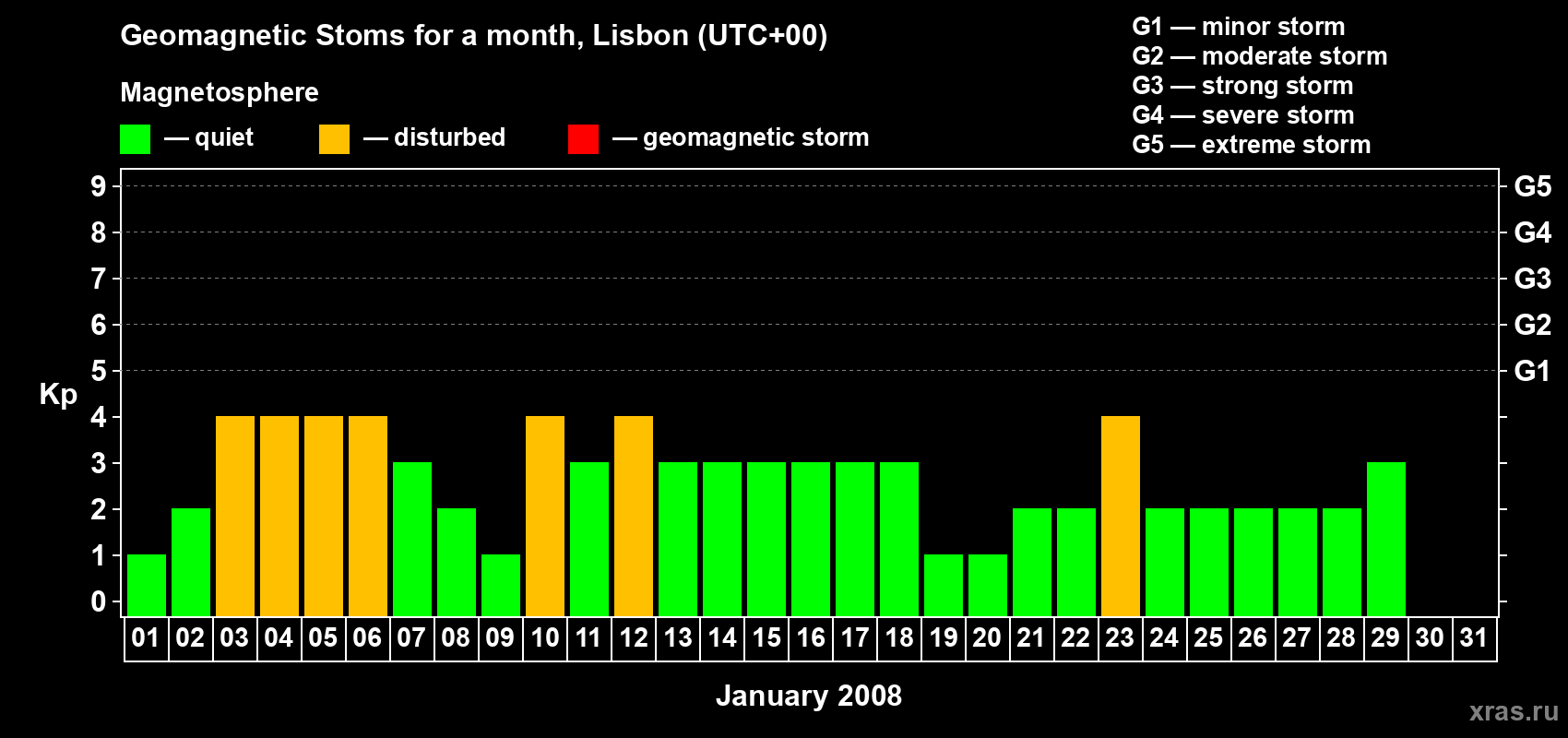 Geomagnetic storms in Lisbon — Jan 31, 2008