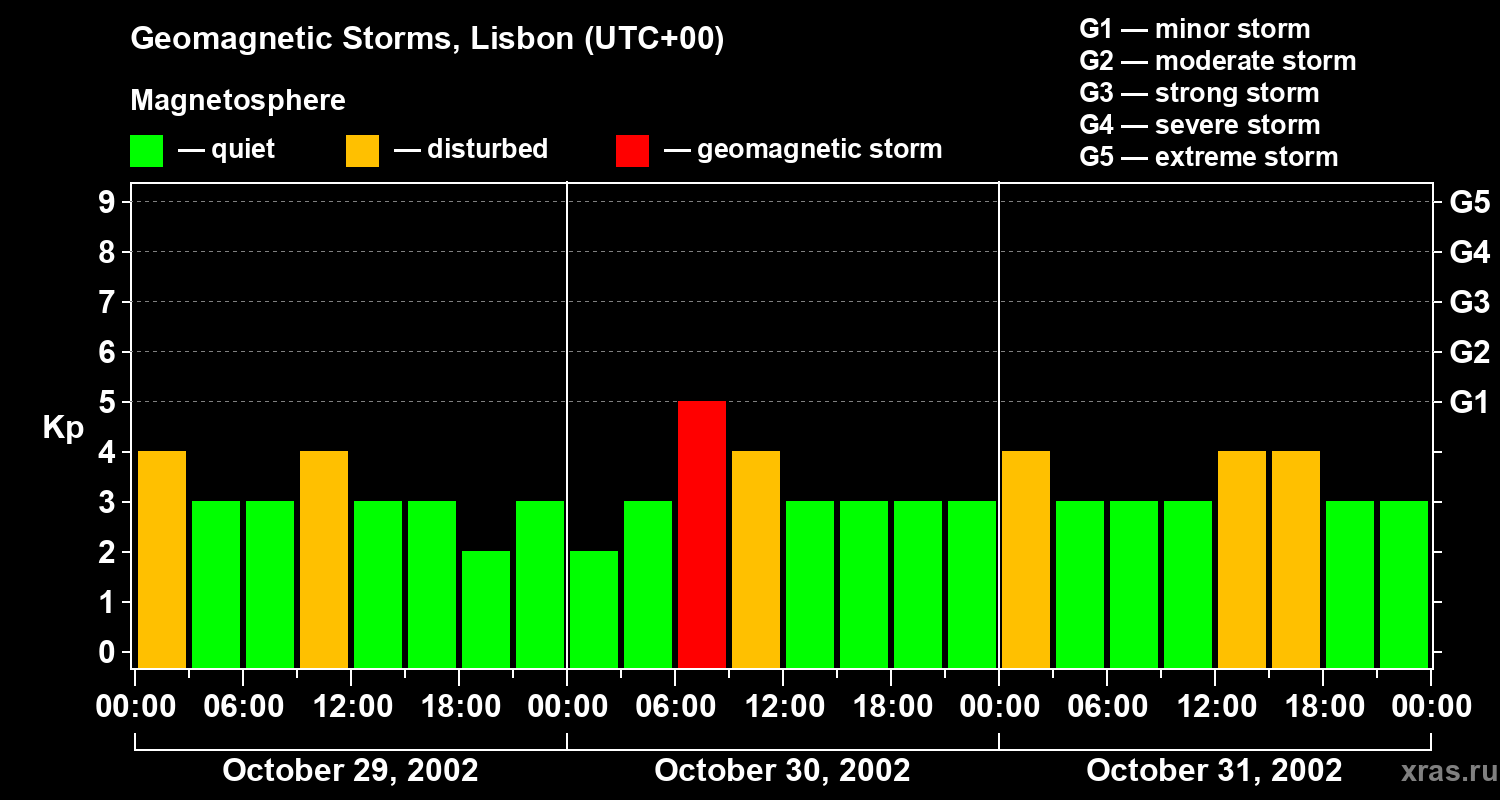 Geomagnetic storms in Lisbon — Oct 31, 2002