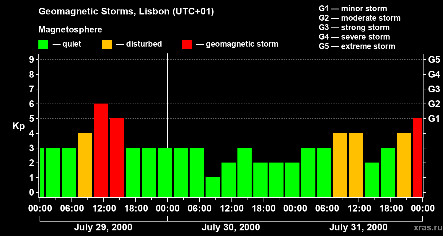 Geomagnetic storms in Lisbon on Jul 31, 2000