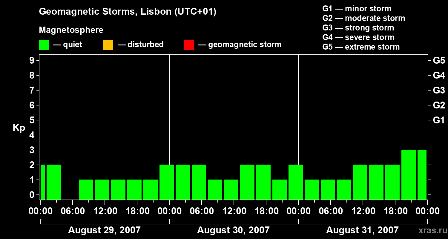 Geomagnetic storms in Lisbon — Aug 31, 2007