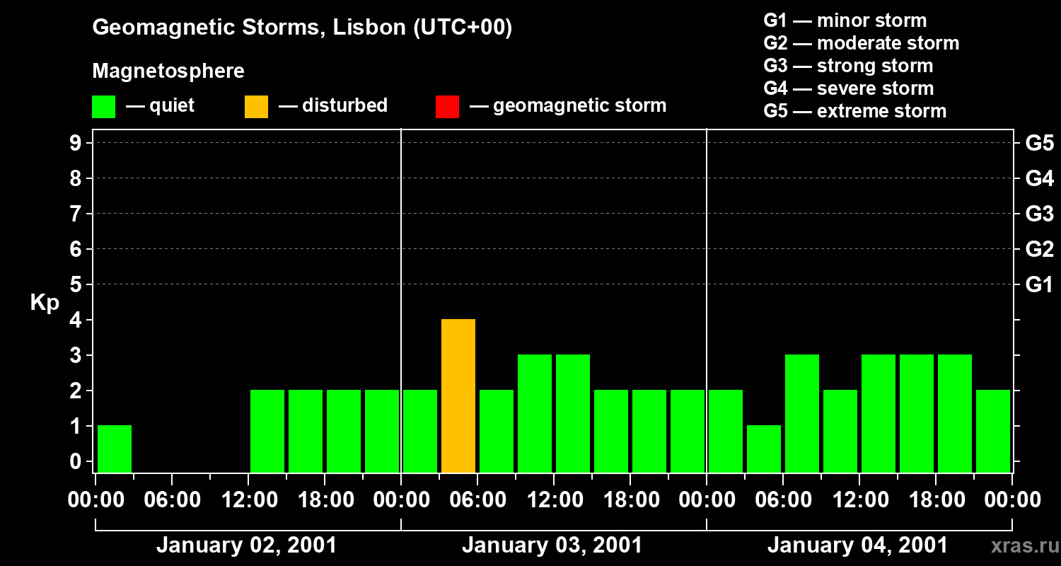 Geomagnetic storms in Lisbon on Jan 04, 2001