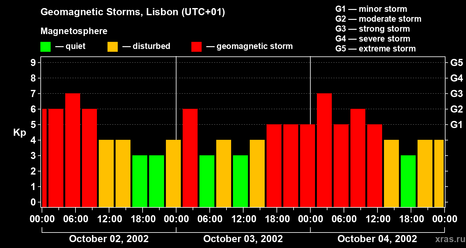 Geomagnetic storms in Lisbon on Oct 04, 2002