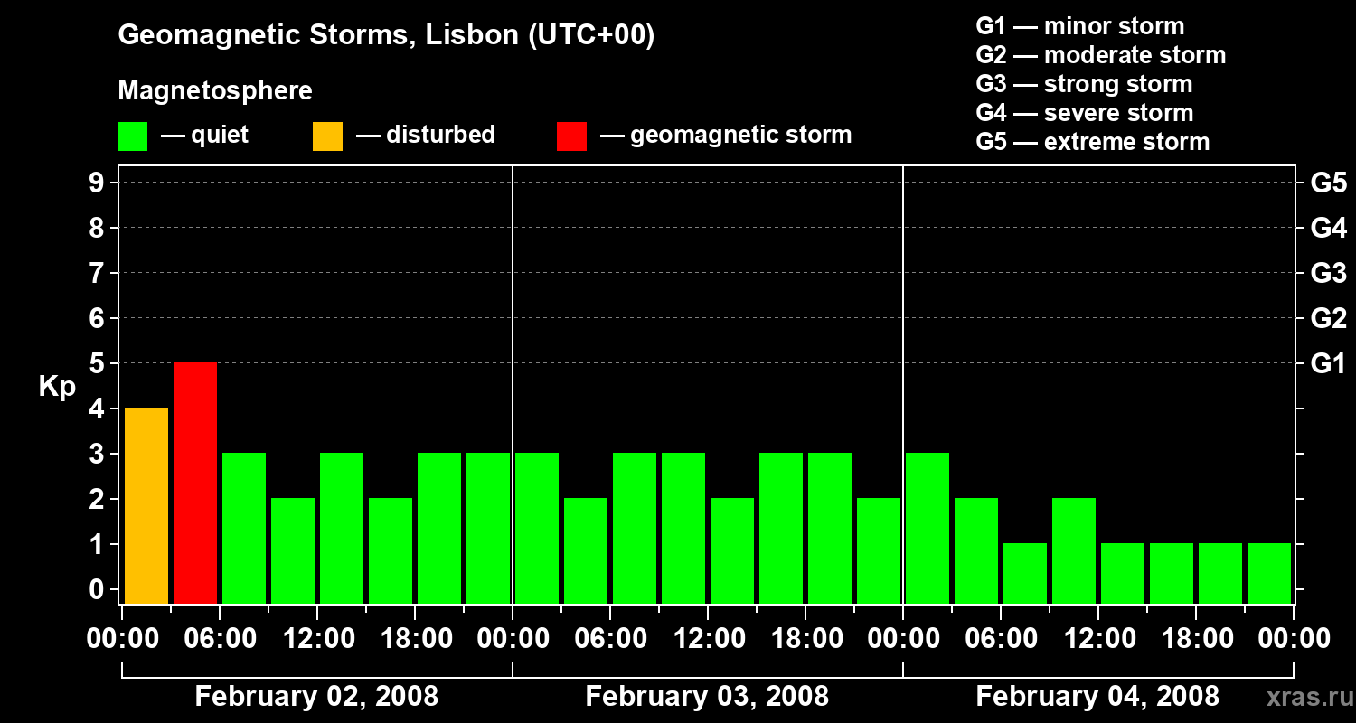 Geomagnetic storms in Lisbon — Feb 04, 2008