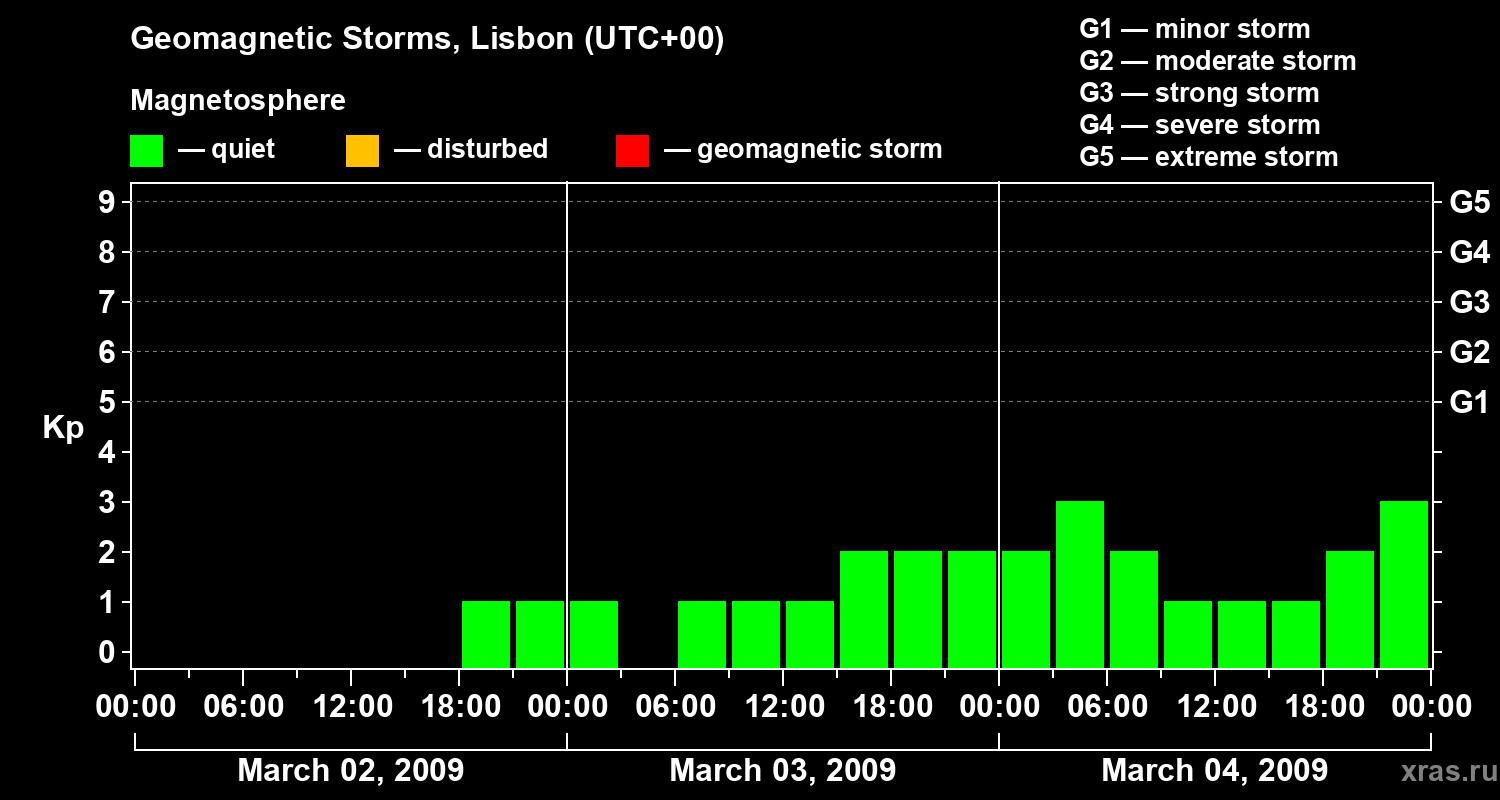 Geomagnetic storms in Lisbon — Mar 04, 2009