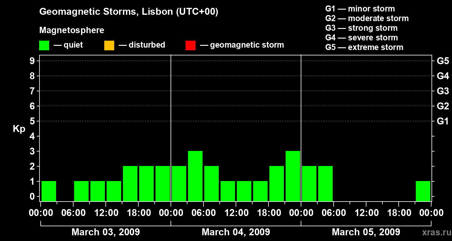 Geomagnetic storms in Lisbon on Mar 05, 2009