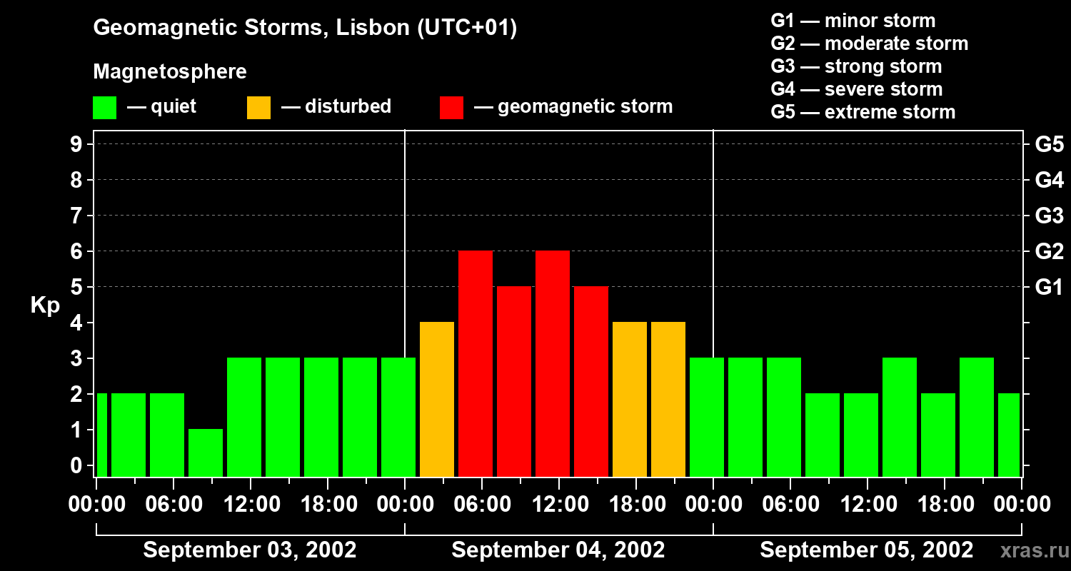 Geomagnetic storms in Lisbon on Sep 05, 2002