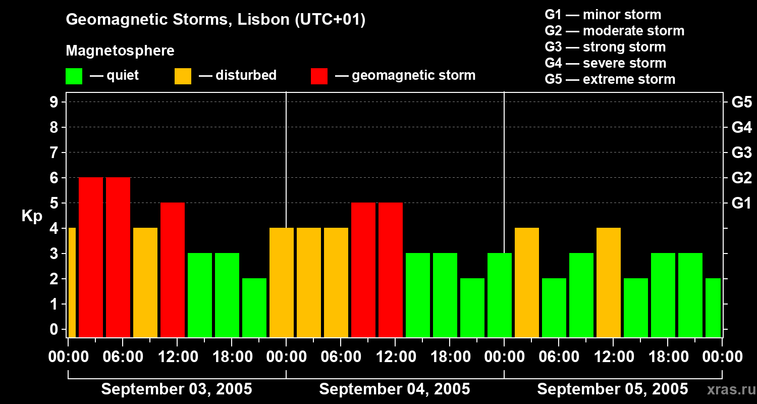 Geomagnetic storms in Lisbon on Sep 05, 2005