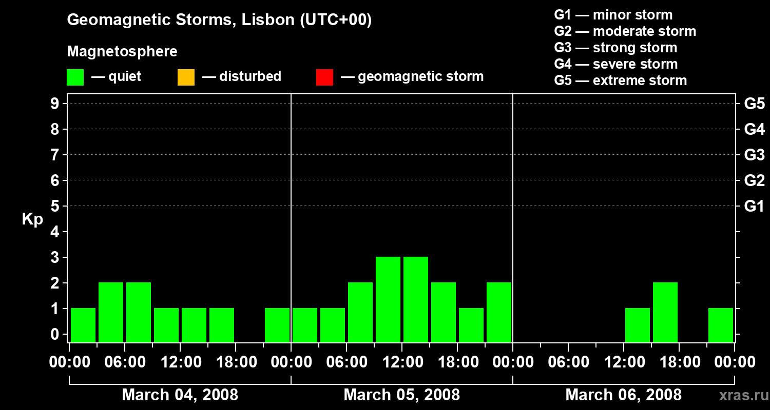 Geomagnetic storms in Lisbon on Mar 06, 2008
