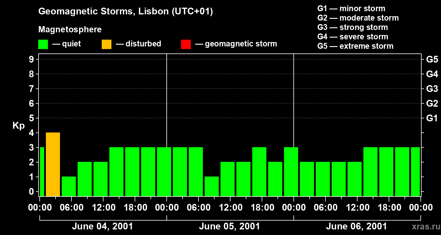Geomagnetic storms in Lisbon on Jun 06, 2001