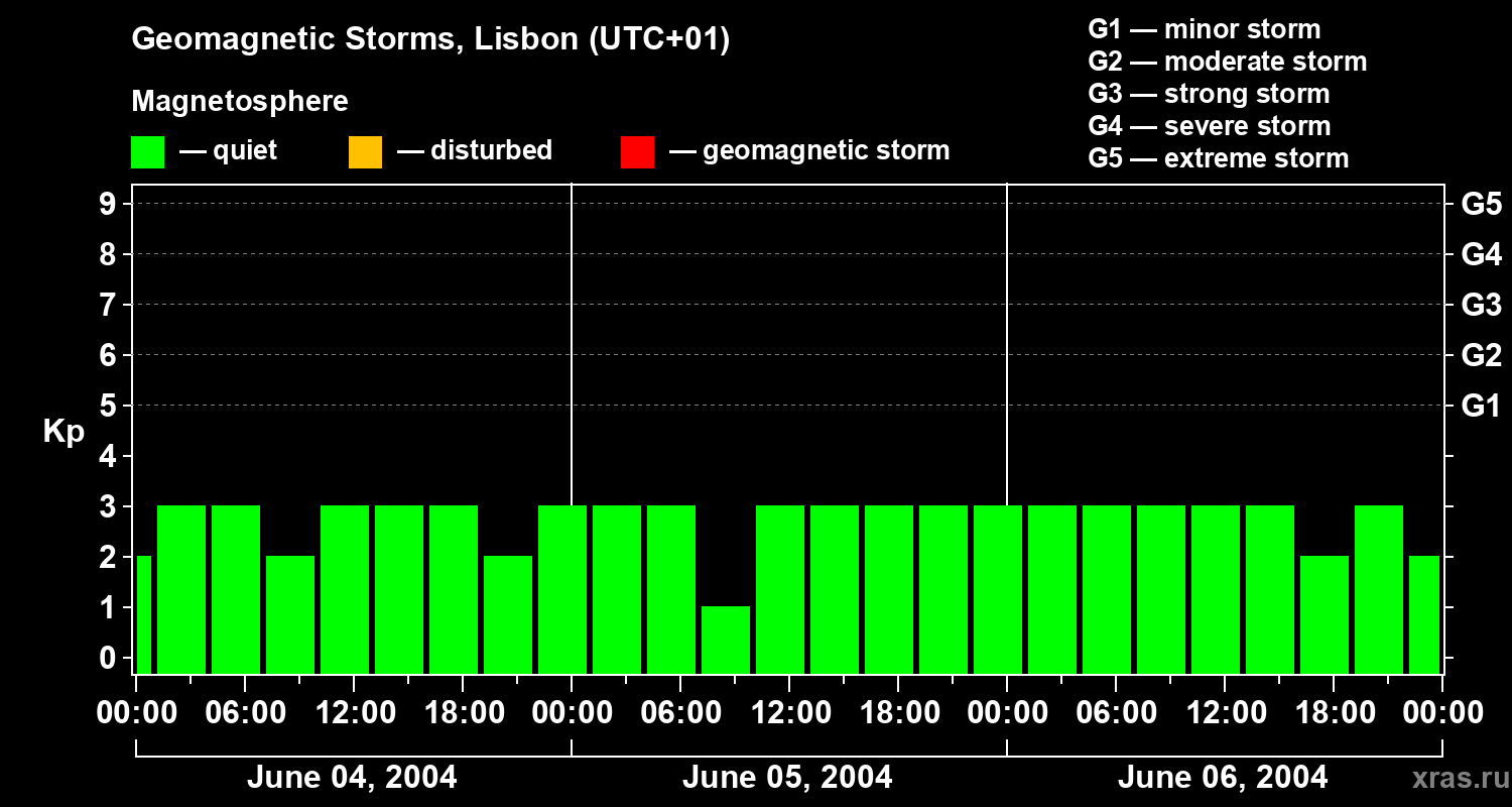 Geomagnetic storms in Lisbon on Jun 06, 2004