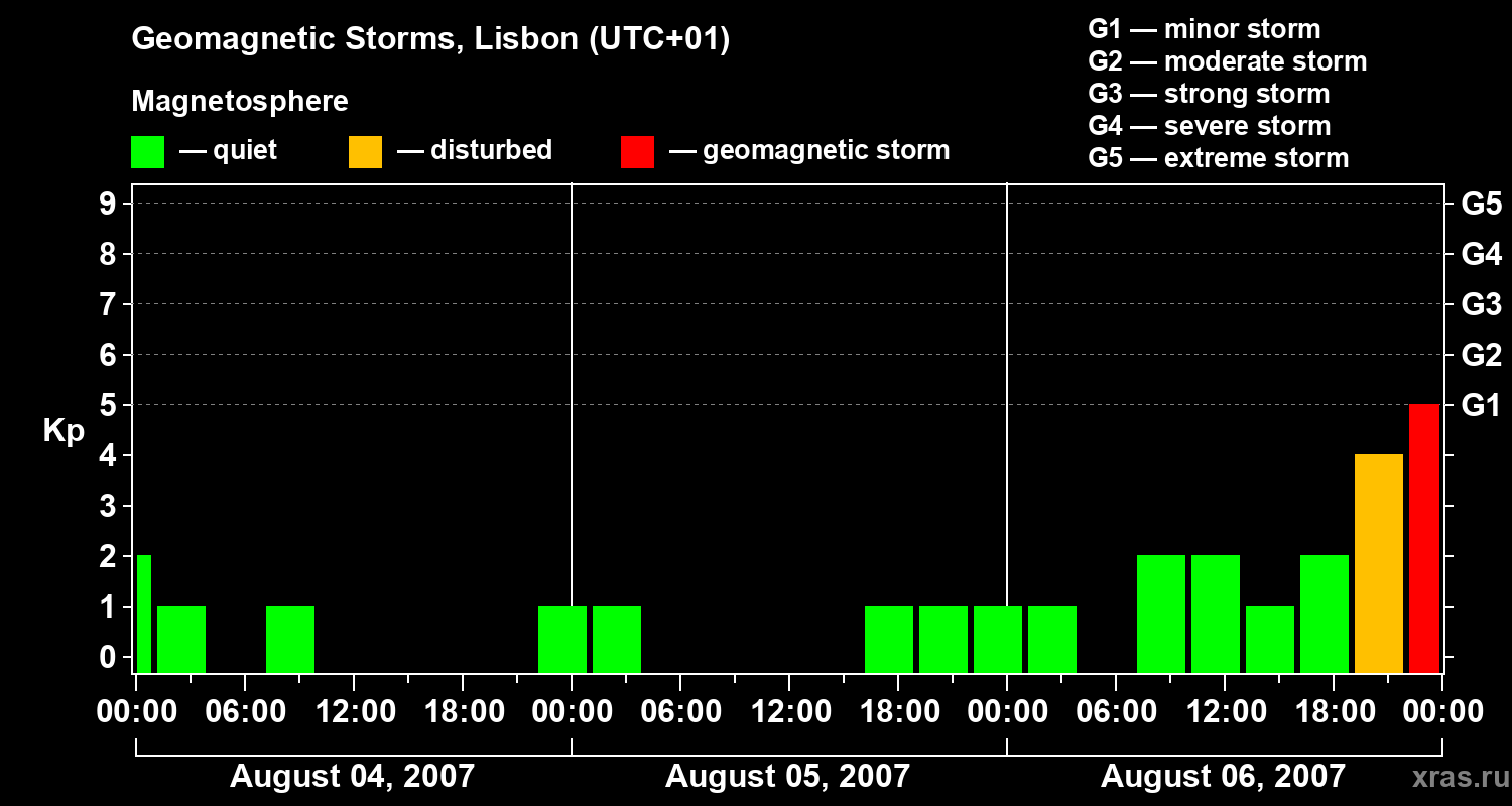 Geomagnetic storms in Lisbon — Aug 06, 2007