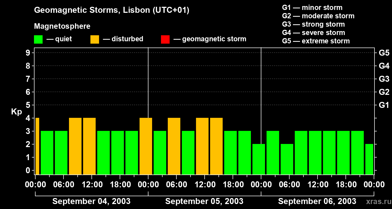 Geomagnetic storms in Lisbon on Sep 06, 2003