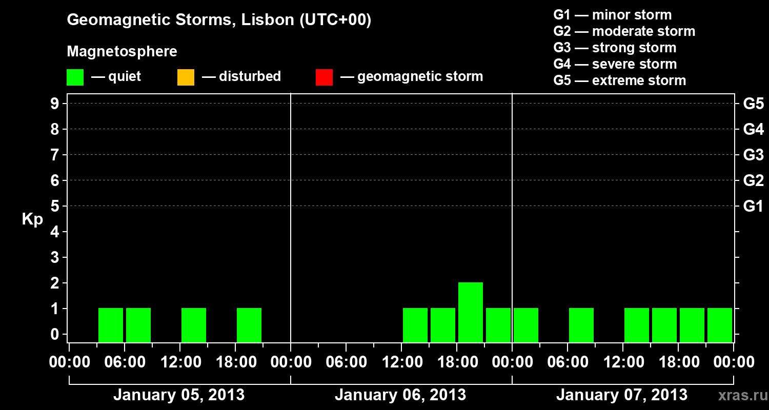 Geomagnetic storms in Lisbon on Jan 07, 2013