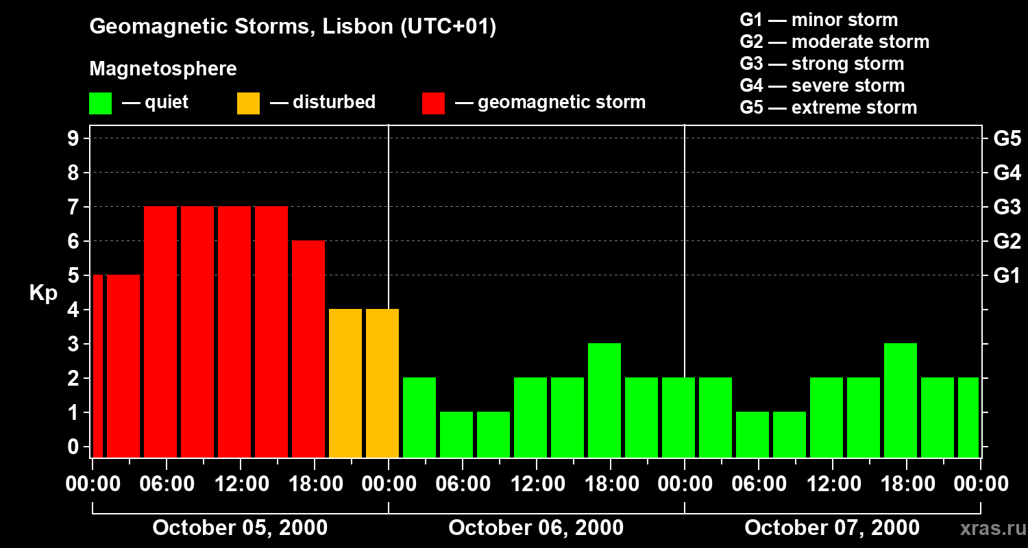 Geomagnetic storms in Lisbon on Oct 07, 2000