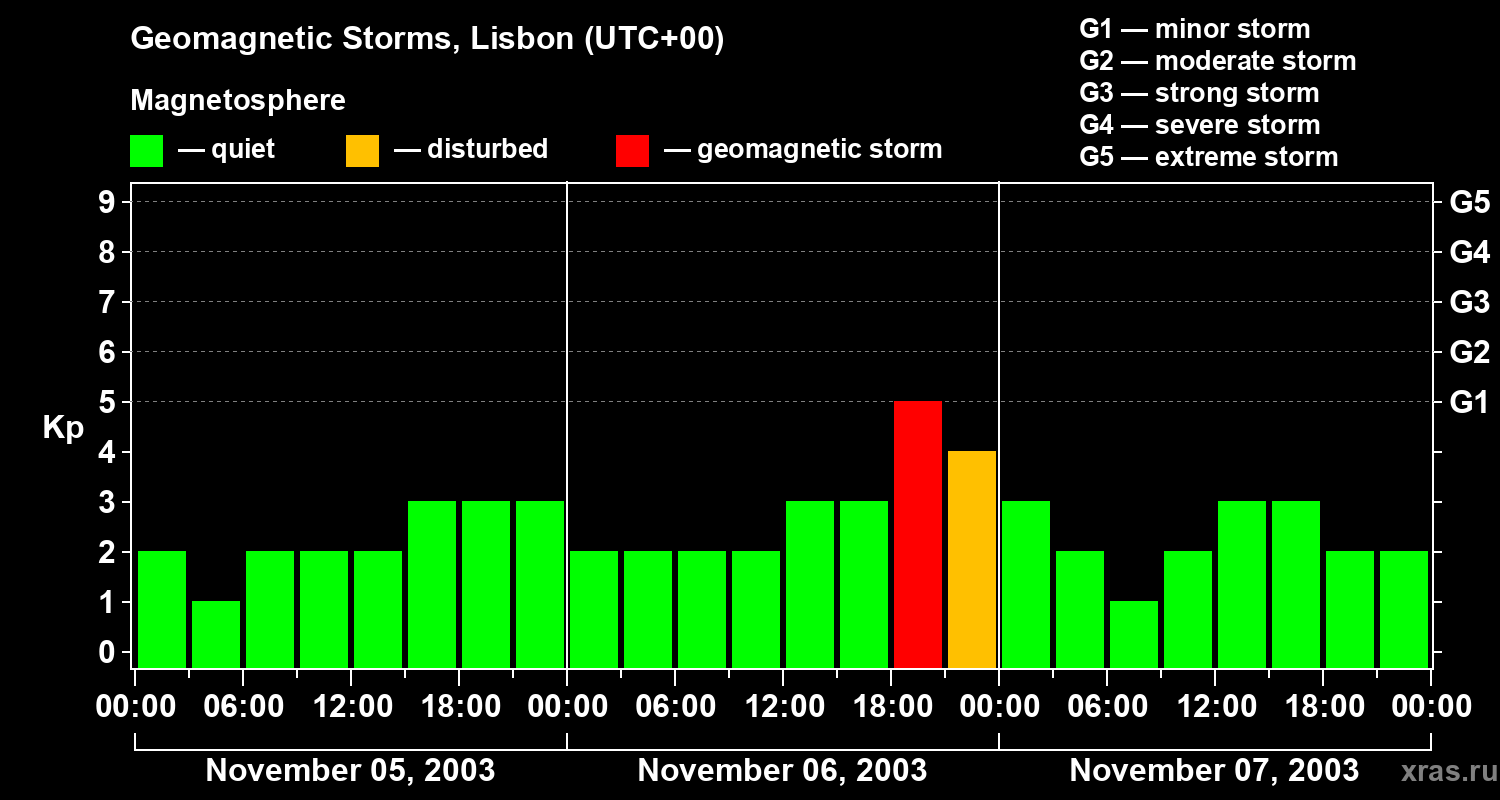 Geomagnetic storms in Lisbon — Nov 07, 2003