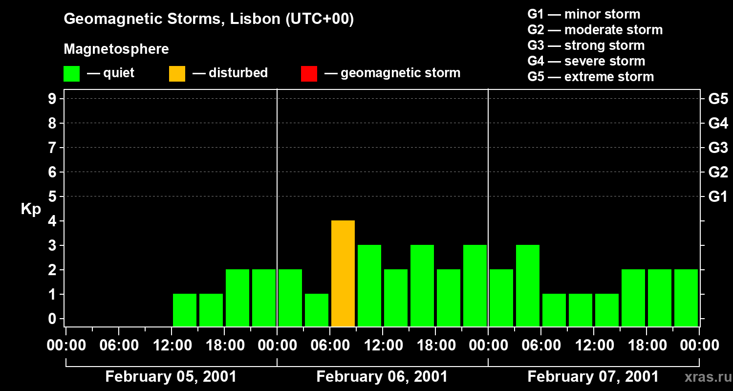 Geomagnetic storms in Lisbon on Feb 07, 2001