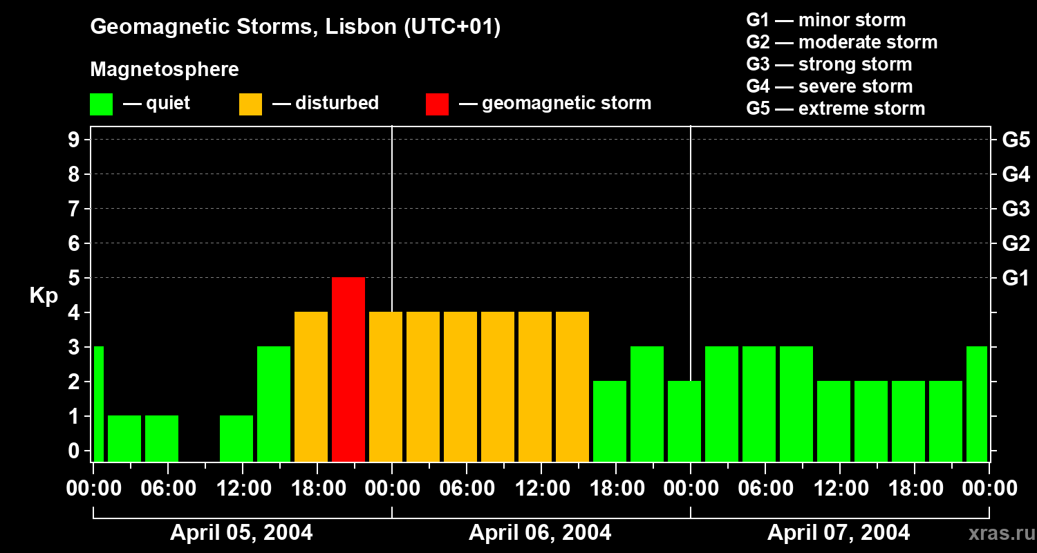 Geomagnetic storms in Lisbon on Apr 07, 2004