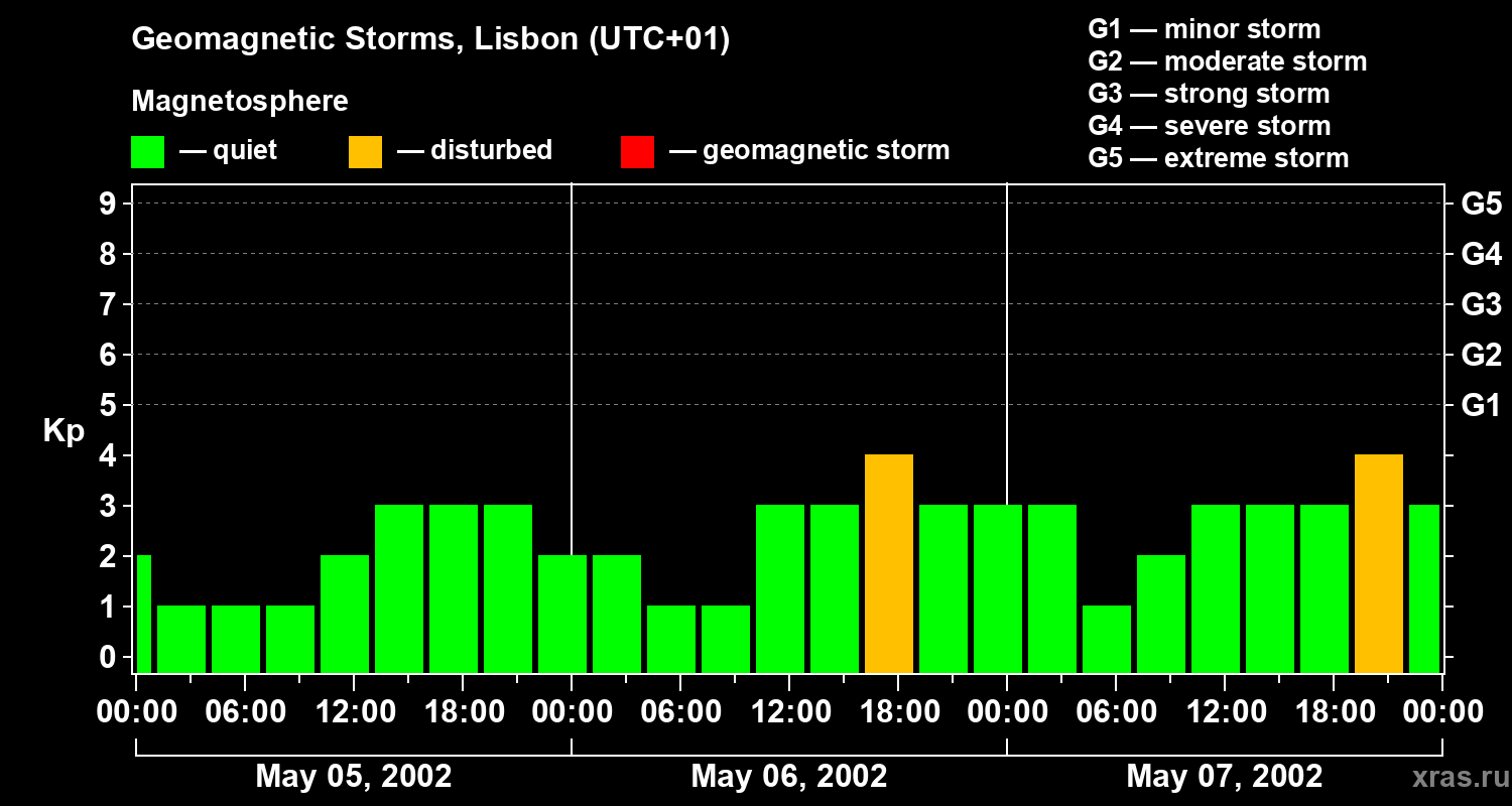 Changes in the maximum daily geomagnetic index Kp in May 2002