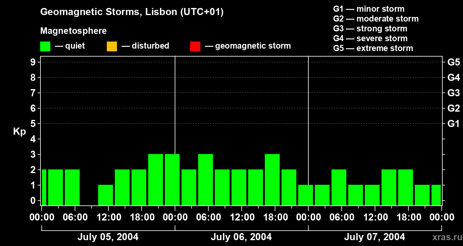 Geomagnetic storms in Lisbon on Jul 07, 2004