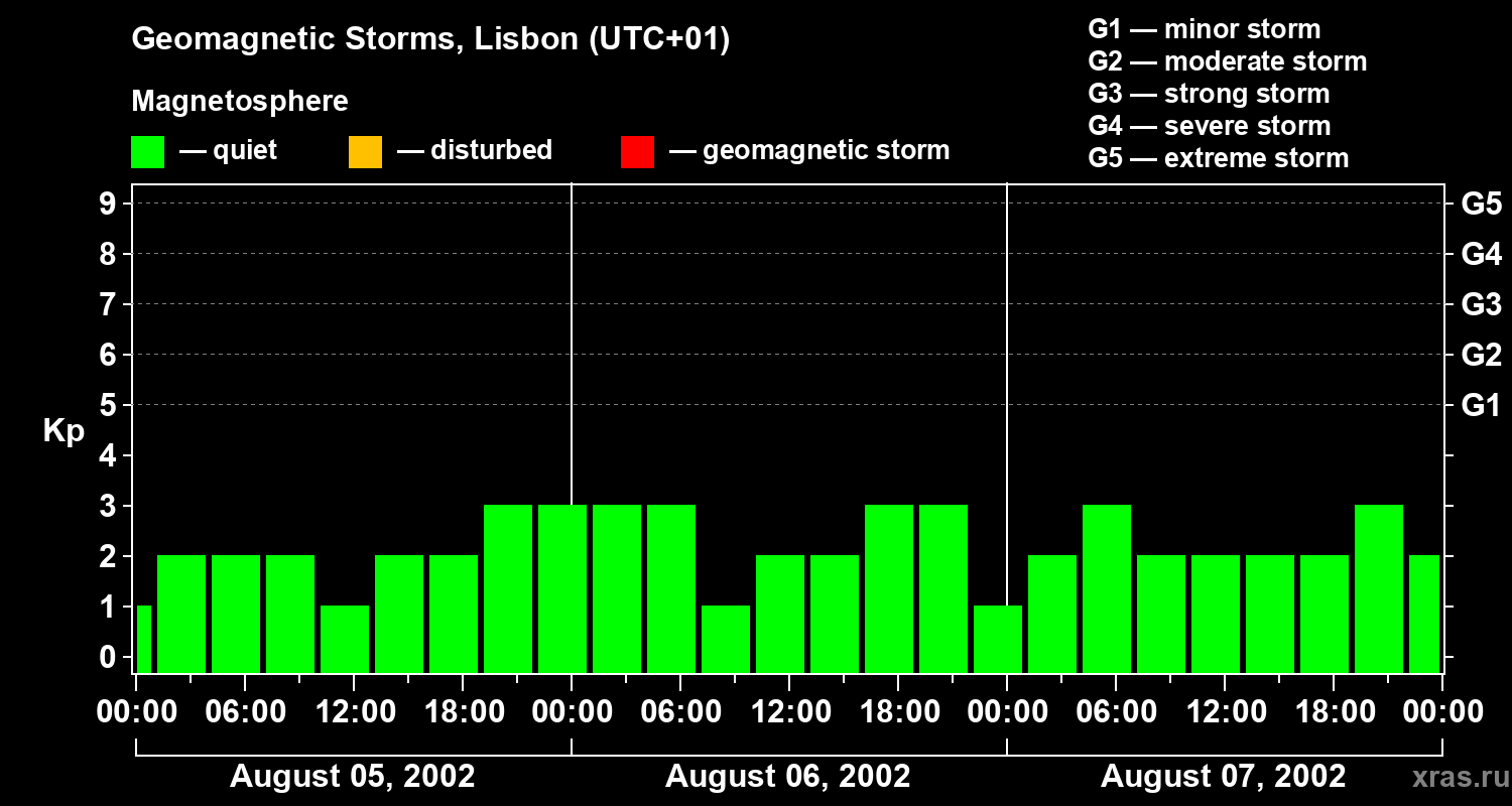 Geomagnetic storms in Lisbon on Aug 07, 2002