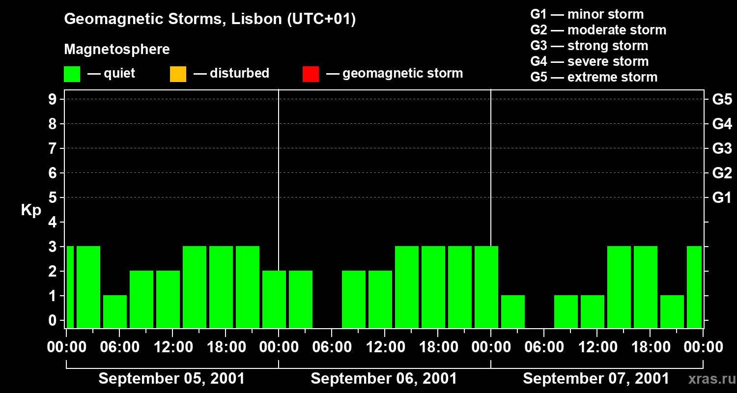 Geomagnetic storms in Lisbon on Sep 07, 2001